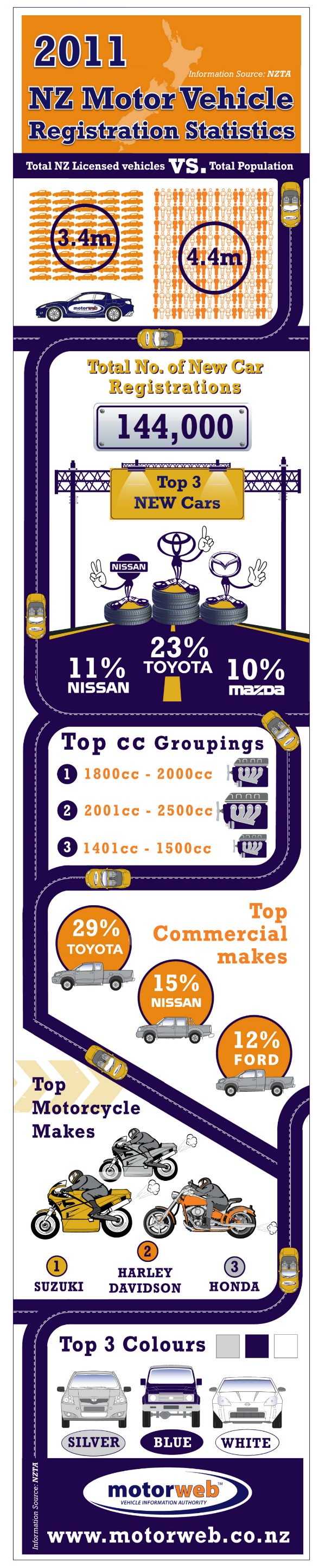 Are there more cars in NZ than people? What are the most popular makes and colours? This handy infographic highlights some interesting facts about our vehicle preferences.
